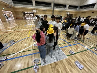 給食のあとは、6年生が企画した「猛獣狩りゲーム」で一緒に遊びました!