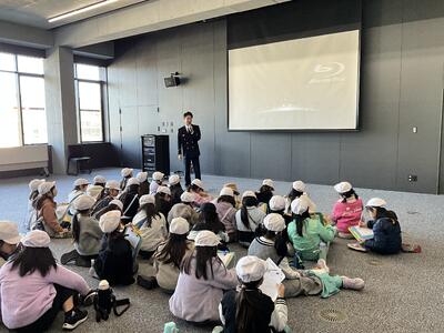 見学では、まず消防署の仕事や役割について、DVDを見ながらわかりやすく学びました。