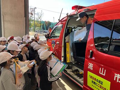 流山市中央消防署にお邪魔して、消防署の仕事や役割、車両見学を行いました。