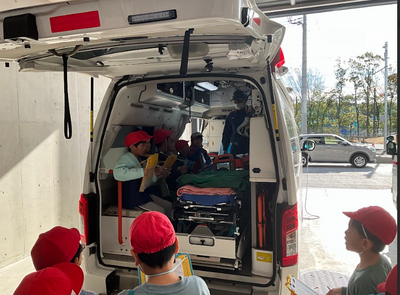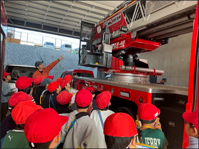 「かっこいい!」「消防署の中ってこうなっていたんだ!」「いろんな種類ののりものがあるね!」と目を輝かせていました
