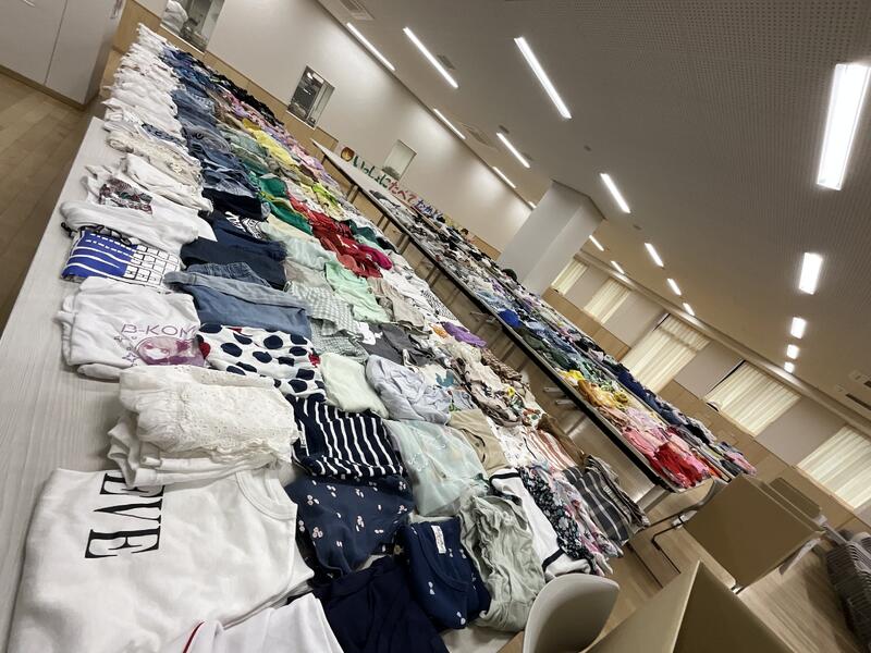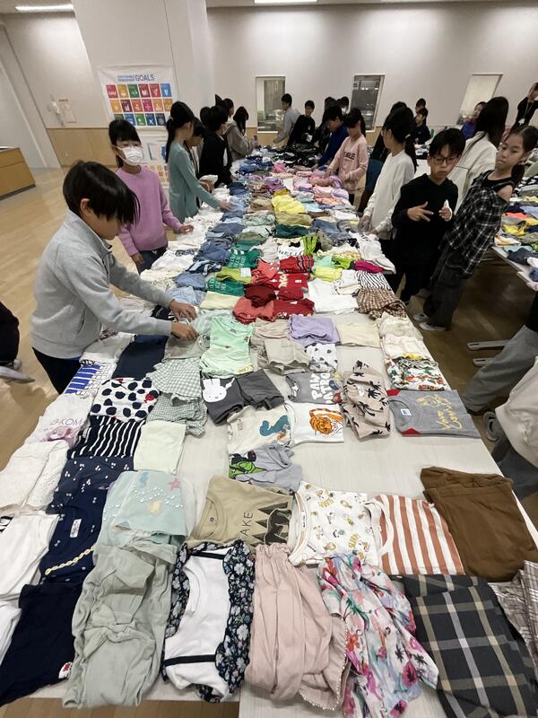 会議室の机いっぱいに広がった色とりどりの服を見て、子どもたちは「こんなにたくさん集まったんだ!」「きっとよろこんでもらえるね」と顔を見合わせ、達成感に満ちた表情を見せていました。自分たちの学びが、誰かの役に立つかもしれないという実感が、子どもたちの心に確かに届いたようです。