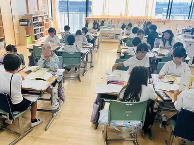 24日(火)から、1の4では、主幹による国語の授業が始まりました。(4組の皆さん、どうぞよろしくお願いします)