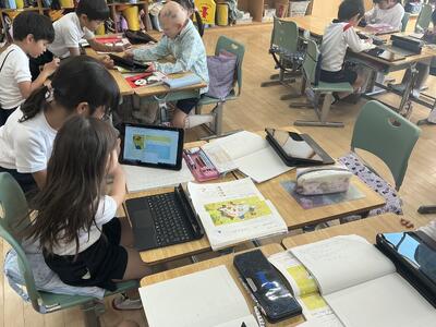 1つ目と2つ目は、国語科としての目標です。3つ目のねらいは、タブレット操作について「できることを増やす」ことをねらっています。