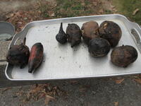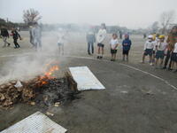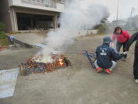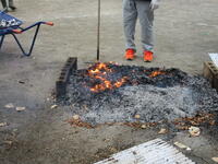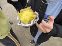 かりんぽけもん農園で5月から育て、先日収穫を行い追熟させていたお芋で焼き芋を行いました。グランドの落ち葉や昨年門松を作った際に余った竹、1年生が図工で使用した新聞紙などを使用し、2時間目の終わりに火をつけました。昨日までの温かさとはうってかわって、時折小雨が降る中での焼き芋でした。ふれあいタイムには、かりん学級以外の児童も集まってきました。1年生の先生が、「どんな匂いがする?」「音はどんな音?」と普段見ることができないたき火と焼き芋の様子を説明していました。また、煙を見ながら風上や風下といった言葉も勉強しました。焼き上がった焼き芋を食べているかりん学級の皆は、満面の笑みで「美味しい!」「また来年も焼き芋やりたい!」「いつ植えたんだっけ?また植えよう!」と自分たちで育てたサツマイモを堪能していました。燃えかすの灰は、畑にまいて土壌の改善に使い、次の作物に備えます。消防にも届け出をし、風を考えながら実施しましたが、近隣の皆様にはご理解いただき、ありがとうございました。