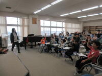 南流山センターにて開催された「生き生きシニアの会」に本校の音楽部と6年生ボランティアの児童が参加させていただきました。この会は、南流山地区にお住まいの75歳以上の方を対象に開かれています。会の中では、本校も福祉の学習でお世話になっている南部包括支援センターの方のお話やゲーム、自転車部でお世話になっている流山市交通安全協会の小見事務局長さんのお話がありました。流山市長さんからは、流山市には100歳以上の方が118名いらっしゃり、健康長寿の秘訣は朗らかに笑うことというお話がありました。今日の生き生きシニアの会で、たくさんの方に笑顔になってもらえたら嬉しいですね。