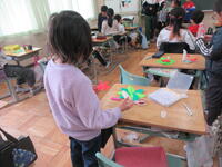 2年生の教室では、おもちゃ作りの分担を行っていました。グループに分かれ、どのおもちゃを作りたいか話し合い、他のグループと調整していました。完成したおもちゃは1年生に紹介して一緒に遊ぶようです。楽しみですね。