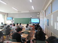 6年生の家庭科の授業では、栄養教諭が入って一緒に授業を行っていました。最初に動画を見ながら朝ご飯を食べるとどんな良いことがあるかを考えていました。