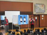6年生は、松戸税務署事務官の皆様を講師にお迎えし、租税教室を行いました。税金にはどんな種類があるのか、税金の仕組みやについてタブレットを使ったり、クイズ形式で答えたりしながら教えて頂きました。実際の1億円のお札(重さや形が同じダミー)を持つ体験もさせていただきました。自分たちが支払っている税金がどのように使われているのか、税について様々なことを知り、少し身近に感じることができたようです。松戸税務署の皆様ありがとうございました。