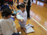 今日は小学校体験会にアートチャイルド南流山保育園の園児の皆さんが来校しました。1年生の児童も自分の役割にだんだんと慣れてきて、案内やクイズ、かみしばい、カードを配ってシール貼りなど、回を重ねるごとに堂々とそして園児の皆差への気配りをする姿が多く見られます。小学校の教室で、小学生とふれあいながら小学校の授業を少し体験してもらうことで、園児の皆さんにも小学校を身近に感じてもらえるのではないかと思います。