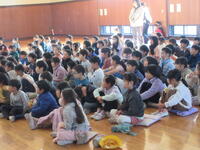 太陽が顔を出さない時間帯や、日陰では寒さを感じる一日でした。今日は、南流山聖華保育園の園児と先生方が小学校体験に来校されました。出迎えの1年生は、すっかりミニ先生のように、上履きに履き替えている児童に「ゆっくりでいいよ。」と声をかけたり、2人組で手をつないで歩いている児童が階段にさしかかると「手すりが、両方にあるから使ってください、階段は手をつながなくて大丈夫です。」と何度か行っている経験を生かしている姿が見られます。紙芝居や校舎案内等の係の児童も同様に、回を追うごとに成長している姿が見られ、頼もしさを感じます。