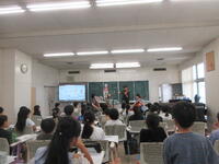 今日は、流山市俳句協会会長北川様をはじめ、協会の皆様を講師にお招きし、3年生の各学級で国語「俳句」の授業を行っていただきました。テーマは、「楽しいよ!わかったよ!また作りたい!」事前に児童が作った俳句を題材にその句のどんなところがよいかやどんな情景が浮かぶかなど鑑賞した後に、俳句とは17文字でできていることや季語が入ること、「見る・聞く・かぐ・触れる・味わう」など五感で感じとり自由に表現する、人それぞれ感じ方が違うのでみんな違っていてよいことなどを教えていただきました。その後、スイカや風鈴の実物を見ながら俳句を作りました。作っているときには、俳句の先生方がアドバイスをしてくださり、こども達はわからないところを聞いたり、教えてもらったりしながら取り組み、自信をつけていました。最後にできた俳句をみんなの前で読み上げた時には、「おー」「へー」と感動の声が上がっていました。児童からは、「楽しかった、もっと俳句を作りたい。」などの感想がありました。是非、夏休みの思い出を俳句にして、楽しんでみてください。流山市俳句協会の皆様、素敵な授業をありがとうございました。