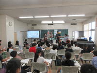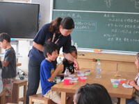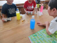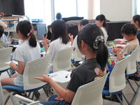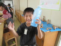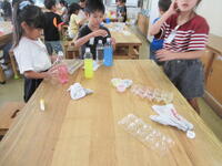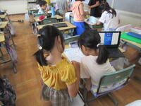 本日午前中は、「特別支援学級及び通級指導教室の見学(体験・説明)会」を、5時間目は、近隣の幼稚園や保育園の先生方による「小学校見学会」を行いました。特別支援学級の体験会では、かりん学級は道徳の授業を、ゆずりは学級では、自立活動の授業を行いました。午後の小学校見学会では、1年生生活科の「なつはともだち・はなやくさであそぼう」の授業を行いました。1年生は、自分で育てているアサガオや学校内の草花、木の実などを集めて材料にし、色水(最初は色水作りの予定でしたが、いろいろな水に作りになりました)作りを行いました。校庭を散策しながら材料集めをしている時に見つけたらベンターややまももの実など児童の発見から材料が増えていったようです。実際に幼稚園や保育園、家庭で色水作りを経験している児童もおり、色々な案が出されたり、学習の途中で他のグループの発表からヒントを得たりしながら色々な水ができていました。こども達の「やってみよう!」という発言のとおり、こども達は、それぞれ考えながら色々な方法を試していました。できた水も様々種類があり、とても楽しそうでした。素早くグループの形に移動して係を決めたり、片付けまでしっかりと行ったりする姿に、幼稚園や保育園の先生方も感心していらっしゃいました。本日来校し、参観された皆様、ありがとうございました。