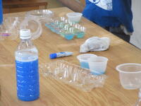 2年生の図工の授業では、「いろいろ色水」の授業を図工室で行っていました。色々な色の水、同じ色でも濃さの違う水など様々な水を作り、名前をつけたりしてとても楽しそうでした。