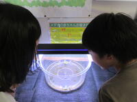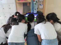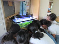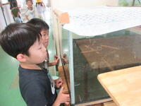 今日は、二小タイムでしたが、お昼はあいにくの雨で外に出ることができませんでした。教室で過ごしたり、職員室前のメダカやカブトムシの観察をしたりして過ごしていました。カブトムシやクワガタの水槽をのぞいている児童達は、火カブトムシ同士の戦う姿や交尾する姿を見たり、クワガタとカブトムシが仲良くする姿に驚いたり、色々な発見をしていて、その様子を教えてくれます。メダカの水槽を見ているのは、理科でメダカの学習をした5年生の児童。卵をおなかにつけているメダカを見つけて教えてくれました。(採卵したいのですが、なかなか採卵床に卵を見つけることができないでいました。)「どうすれば卵を採取できるか・・・。」一緒に考え、別水槽に移してみることにしました。以前、保護者の方からいただいたメダカの卵は大分大きくなってきました。また、学校で採取した卵もまだ小さいですが小さな水槽で泳いでいます。別水槽に分けたメダカの卵も育ってくれると良いのですが・・・。みんなで観察を続けていきましょう。