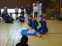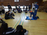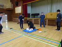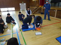 今日の午後は、流山南消防署の署員の方を講師にお迎えし、救急法講習(AED・誤飲対応)職員研修を行いました。最初に大人に対する心臓マッサージ等の方法を教えていただいた後、グループごとに実際に体験研修を行いました。その後、小児に対する方法や誤飲の際の対応を実演を交えながら教えていただきました。消防署の方からは、「いざというときにきちんと対応するには、1回の講習だけでなく、何回も継続して練習することが大切。」というお話をいただきました。今日の研修は、その後のアレルギー対応研修も含め、特別支援学級の介添員等、多くの職員が参加しました。いざというときに、しっかりと対応し、児童の安全を守れるようにしていきます。