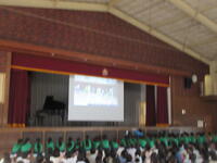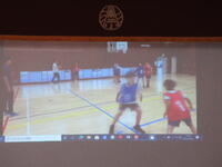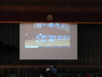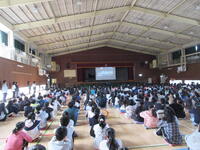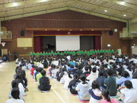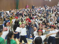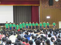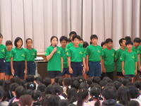 今日の二小タイムでは、31日に迫った、流山市小学校ミニバスケットボール大会に向けて頑張っている、運動部の皆を全校で応援する「運動部を励ます会」を行いました。練習風景の映像が流れると、見ていた1年生から「かっこいい、僕もあれやってみたい。」という声が聞こえてきました。遊友応援委員会による全校応援や、歌声委員会による校歌合唱を行いました。この会の企画は計画委員会が行いました。全校みんなの気持ちが運動部のみんなに伝わる素敵な会になりました。運動部んの皆さん、31日の大会では、練習チーム全員で全力を尽くし、練習の成果を発揮してください。