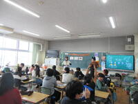 3年生の教室できこえの教室の担任による「難聴理解授業」を行いました。きこえの教室に通う児童が、きこえの教室でどんなことをしているのか、聞こえづらさはどのような時に感じるのか、補聴器の仕組みなどをクイズや難聴理解かるたを行いながら学習しました。今年行われるデフリンピックは知らない人も多く、たくさんの競技が東京で行われることを今回の授業を通して知った児童も多かったです。最後は、クラスの皆へのメッセージを読み上げました。そして、授業を受けた児童一人一人がメッセージを書いて終わりました。担任の先生からは、先生もめがねがなければよく見えないことや、難聴のバスケットボール選手の話などがありました。こども達のメッセージには、授業の感想やこれからもっと協力していきたい旨の思いが書かれていました。