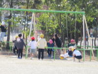 2校時からふれあいタイムにかけて、アイアイナーサリーとキッズラボの園児の皆さんと先生が学校見学に来校しました。1年生の授業を中心に見学して頂き、ふれあいタイムは遊具で児童達と遊びました。1年生は、「今日は紙芝居読まないでいいの?」と体験会を行いたい様子でした。今学期の体験会は終了しています。