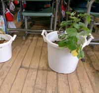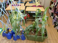 生活科で育てている野菜。自分で選んで自分で考えて育てています。でも、虫に食われたり葉っぱが茶色くなったりと心配事は尽きません。そこで考えた子どもたち。「そうだ!水代さんを呼ぼう!!。」野菜の先生に来ていただき、質問をたくさんしました。立派な野菜が育ちますように・・・