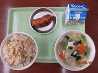 わかめご飯、大根の味噌汁、肉じゃがです。