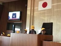 (写真2)市議会の議場です。議長席に座らせていただきました。
