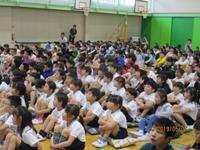 集会ではみんなと仲良くなれる魔法の言葉を6年生が教えてくれました。