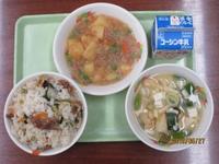 小松菜とぶた肉のまぜごはん 流山産小松菜を使ってのメニューです