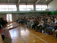 今年は吹奏楽部の演奏と4年生考案の盆踊りを披露しました。また、いつもお世話になっている地域の方に恩返しがしたいとメダルや花、うちわを心を込めて作りました。敬老の日をお祝いするために準備してきましたが、沢山の拍手とありがとう!!のあたたかい掛け声に逆に元気をいただく会になりました。卒業生が名付けた「ハッピーお楽しみ会」の名前の通り、見る人も発表する子どもたちも、みんながハッピーになれる素敵な会になりました。皆さん、いつまでもお元気で!!