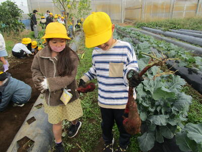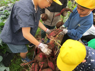 2年生が5月に植えたさつまいもが大きく育ちました。掘って掘ってまた穂って。いろんな形をした大きなサツマイモに満面の笑み。このさつまいもは、全校で給食でいただきます。メニューは2年生が考えます。どんなメニューに変身するのでしょうか?9月に植えたブロッコリーの苗もこの通り。まだまだ収穫の楽しみは続きます!!