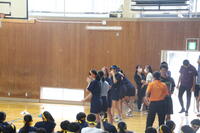 体育館を使える短い時間は、シスター発表の全体練習を行い、各クラスでの活動の場合は、応援のためのポンポン作りや細かな応援の確認や声出しを行っています。