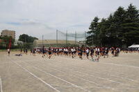 体育祭練習2日目は、天候に助けられ比較的涼しい中で活動が出来ています。