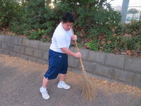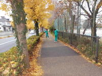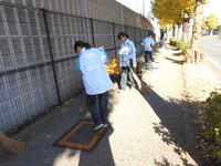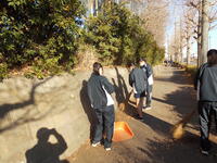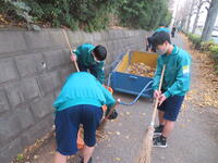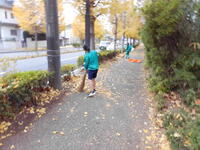 大掃除の生徒達が、正門前から車屋さんの前までの歩道の落ち葉を綺麗に掃いてくれました。イチョウの葉で絨毯のようになっていた歩道が、アスファルトがはっきり見える綺麗な歩道に変わりました。