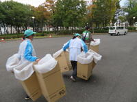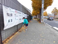 ★12月16日(土)陸上部 正門前から裏門前までのイチョウの落ち葉を回収。正門から下った下り坂も