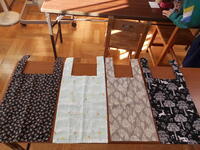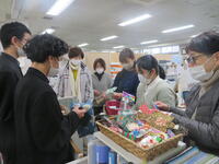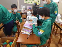 特別支援学級の生徒が、作業の授業の時間を使って、コースターやティッシュケースなど他にもたくさんの作品を作成しています。布をミシンで縫う作業から、最後のラッピングや値札シールをつける最後の作業まで自分たちで行い、今後福祉施設へ寄贈する予定です。
