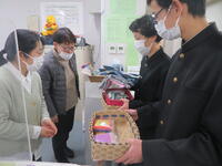 12月19日(火) わかくさ学級の生徒が作業の授業で作った製品を、流山市福祉ケアセンターの職員の方々に直接プレゼントしに行きました。生徒が一生懸命作成した作品を受け取ったケアセンターの方々には、とても感謝していただくことができ、とても有意義な時間になりました。今後も地域との繋がりをさらに深めていきたいと思います。
