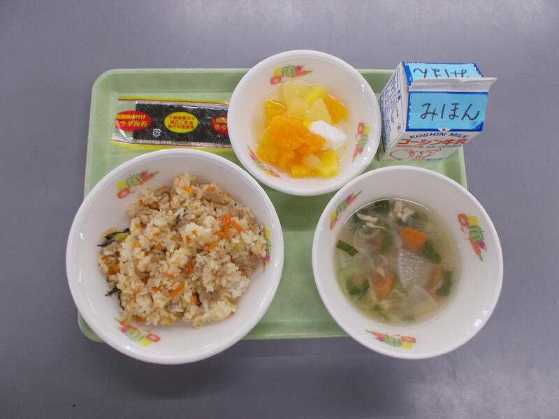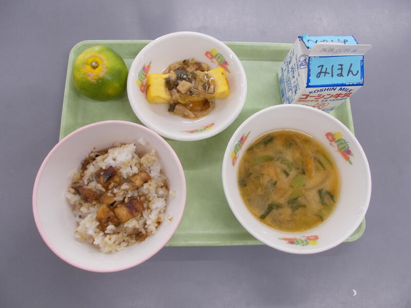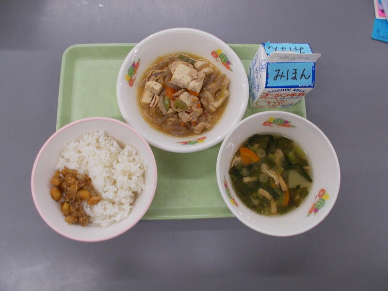 今日は和食の献立、給食でした。主食ごはん、主菜厚焼きたまご、副菜切り干し大根の煮物、汁物豆乳みそ汁。和食の基本が揃っていて和食の良さが味わえる給食で、子どもたちにはシンプルな甘い味つけの厚焼きたまごの人気が高く残菜がとても少なかったです。切り干し大根の煮物は甘さを控えめにし、だし汁と合わせた調味料が切り干し大根によく染みこんでいてお代わりをたくさんしている様子が見られました。職員室でも切り干し大根の煮物は大絶賛で、先生方もお代わり続出でした!