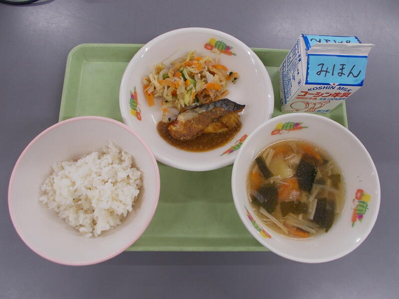今日は6年1組の代表献立でした。さばの味噌煮は本来、煮るのですが1000人以上分を煮るのは大変なのでさばを焼き味噌煮のたれをからませました。青のりポテトビーンズは初めてのメニューだったので、今まで実施した似ているメニューを参考に作りました青のりの香りがとても良く、じゃがいもも大豆も揚げてありパクパクと食べられ子どもたちにも大人気でした。12,1,2月と代表献立が登場するので楽しみにしていてくださいね