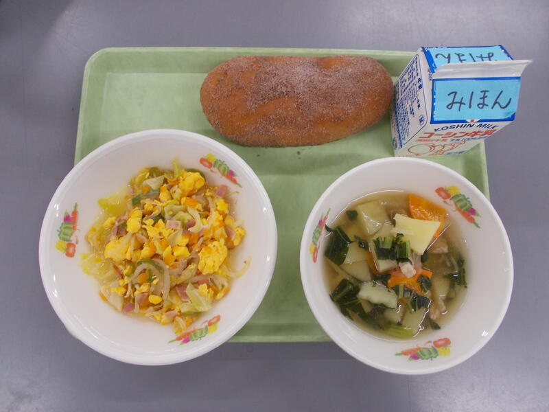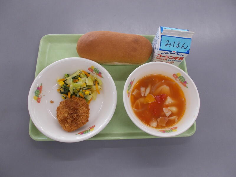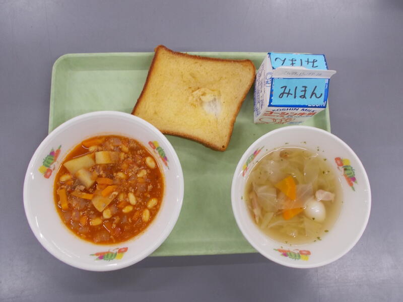 献立を考えるときに組み合わをいつも同じにならないよう気をつけて考えています。今日はトーストに久しぶりの焼きビーフン、子どもたちに人気の中華コーンスープでした。今日の給食を見た3年生から「今日の組み合わせは最高!」という声が聞こえてきました。自分が好きなメニューが出てきたら子どもも大人も嬉しいですね