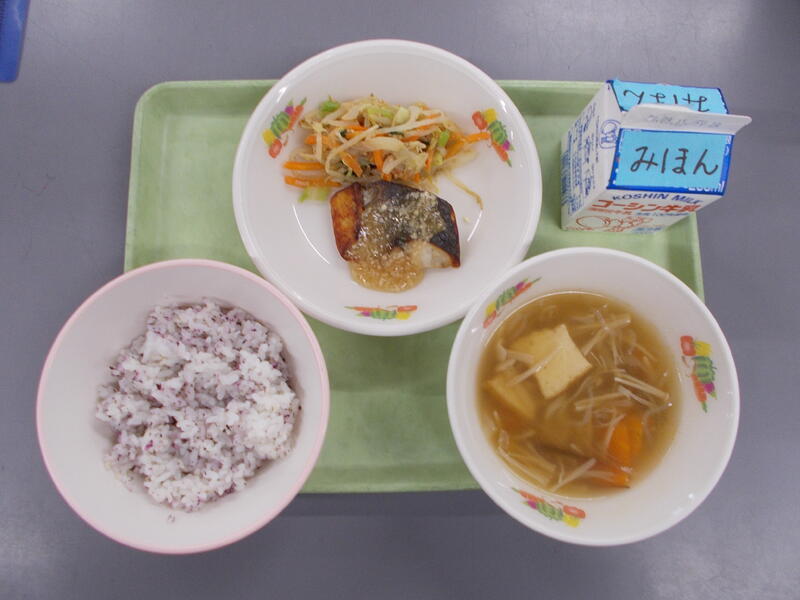 今日は春から夏においしい今が旬のアジを使ったメニューです。アジの切り身にノンエッグマヨネーズと調味料を混ぜたソースをぬり、パセリ、バジルを混ぜたパン粉をのせてオーブンで焼きました。ソースとハーブパン粉がアジとよく合い香ばしさもありとてもおいしかったです。1年生は魚が苦手でもひとくち食べていました。これからも旬の魚をいろいろな料理で子どもたちに届けていきます。ひとくちの経験を積み重ねていきましょう。