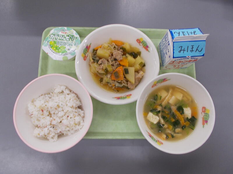 今日は6年生が家庭科で考えた献立です。各クラス代表献立を2名ずつ選出しました。家庭科の学習で学んだことを生かせているか、給食のような大量調理が可能かなど様々なことを考慮し家庭科教諭が主となって選びました。今年は和食を中心とした、献立の基本となるようなものが選ばれています。中にはまだ給食では実施したことが無いメニューもありますが、できるだけ子どもたちの考えたメニューに近づけられるよう頑張ります!