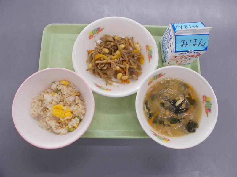 いつもどんぶりにして食べるビビンバを今日は混ぜごはんにして子どもたちへ提供しました。混ぜごはんの具を作っている時から、廊下や階段、外までおいしい匂いがただよい、お腹が空いちゃうね~という声や来校した教材屋さんからも今日は給食何ですか?と質問されるほどでした。そんな匂いからもわかるおいしさで、混ぜビビンバは子どもたちもよく食べていて残菜も少なかったです。