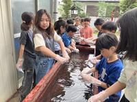1年生は、久しぶりの青空の下、水遊びを楽しんでいました。