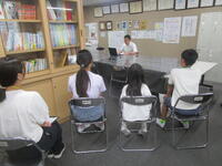 2学期最初の木曜日、第1週からさっそく読み語りボランティアの皆さんが来校してくださいました。教頭先生と私で「おはなしの花束」の皆様に、学期はじめのごあいさつに行かせていただきました。いつも、子供たちだけでなく、私達職員にも笑顔で接して下さる皆様に励まされます。今学期もよろしくお願い致します!