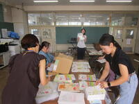 今日は熱中症警戒アラートの発表がなかったので、ふれあいタイムと昼休みは外で遊ぶ児童が多かったですが、涼しい図書室はいつも人気で、図書委員の児童が貸出業務を頑張っていました。