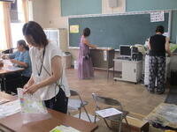 夏休み最後の平日となりました。秋の訪れはもう少し先でしょうか、まだまだ暑いですね。職員室前廊下には、メダカたち用に新しい水槽が入りました。ALTの先生は、新しい掲示物を作って児童のみなさんが登校するのを待っています!給食室の調理員さんたちも、9月3日からの給食の準備のために毎日出勤されています。2学期最初、久しぶりの給食は、ポークカレーライスにやさいソテー、梨ゼリーです。今から楽しみです!