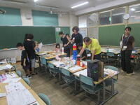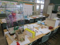 2年3組の図工の後片付け。声をかけあって仲よく協力している姿がほほえましいです。