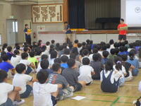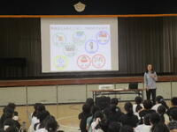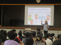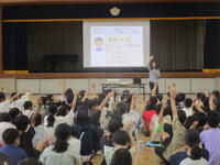 その後、夏休みに姉妹都市の石川県能登町の小学生と流山市内で交流をした児童、同じく姉妹都市の岩手県北上市での2泊3日の自然体験学習ツアーに参加した児童の2名から発表がありました。それぞれ、姉妹都市交流を通してたくさんの学びがあったことや、全校の友だちへのメッセージをしっかりと伝えられて、とても素晴らしい発表でしたキラキラ