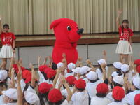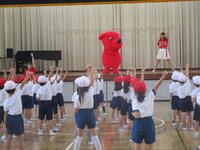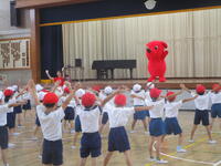 本日午前中、本校にあの「チーバくん」がやってきました!1年生が2クラスずつ各1時間、チーバくんやお姉さんとクイズやじゃんけんで盛り上がったあと、「夢見るチーバくん」の曲に合わせたダンスを教わり、みんなはりきって振り付けを覚え、元気に踊りました!チーバくんキャラバン隊の皆様、楽しい時間をありがとうございました!