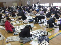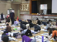 今日は、4年生、3年生が2時間ずつ、書き初め練習会で講師の先生にご指導を受けながら練習していました。