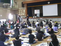 特に3年生は、ほとんどの児童が毛筆で書き初めを書くのは初めてなので、緊張しながら一生懸命に講師の先生のお話を聞いていました。